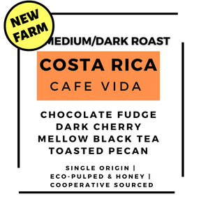 Coffee from Costa Rica has evolved tremendously in the past 15 years. This coffee is a true testament to the level of quality available to us along with the amount of work involved in sourcing the best coffee. Café Vida is a coffee only available to our green coffee buyer in Costa Rica, Oxcart Coffee Company. Oxcart Coffee Company is a Costa Rican company that works directly with small farmers all over the country. The coffee they are sourcing for us comes from farms in the Central Valley region.