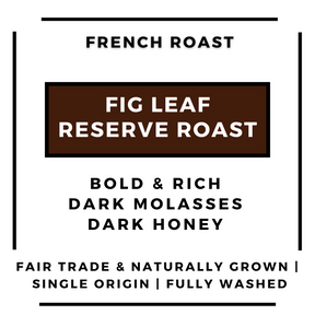 If you are a coffee drinker that loves something with a bite then the Fig Leaf Reserve Roast is for you! This coffee began as a sample roast for one of our regular customers who wanted something dark but still have full flavor. If roasted properly, a dark roast can have incredibly rich flavor profiles and we did that here! Now it's one of our top sellers.